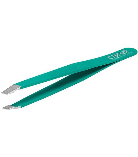 CANAL Haarpinzette rostfrei/schräg 95 mm (Grün) 2069 B