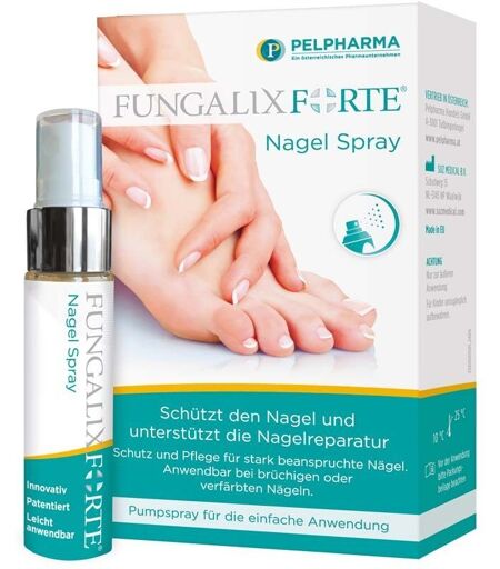 Fungalix Forte Spray Schützt den Nagel und unterstützt die Nagelreparatur Schutz und Pflege für stark beanspruchte Nägel Pumpspray zur einfachen Anwendung Schnell trocknend Bei verfärbten oder brüchigen Nägeln Einfach und hygienisch in der Anwendung Zur Schuhhygiene empfohlen Anwendung: Bei verfärbten oder brüchigen Nägeln wird Fungalix Forte 2 x täglich (morgens und abends) aufgesprüht. Zur Vorbeugung und als Schutz und Pflege einmal täglich auf den Nagel und die umliegende Nagelhaut aufsprühen. Empfohlen werden ein bis zwei Pumphübe pro Fuß oder Hand. Inhaltsstoffe: Alcohol Denat., Aqua, PEG-40 Hydrogenated Castor Oil, Melaleuca Alternifolia Leaf Oil, Sodium Benzoate, Panthenol, D-Limonen, Linalool. Hersteller: Pelpharma Handels GmbH Wohndorfweg 36 A-3001 Tulbingerkogel Österreich ...