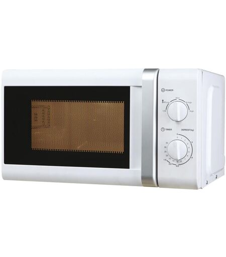 Leistungseigenschaften: mechanische Steuerung; 5 Leistungsstufen; Leistung der höchsten Mikrow.-Stufe: 700 W; Auftaustufe; Bedienung: Bedienung durch Drehregler; max. 30 Min. einstellbare Laufzeit; Countdown-Timer/Kurzzeitwecker; akustisches Fertig-Signal; Beschaffung des Garraums: Garraum-Volumen: 20 l; Glas-Drehteller; Drehteller-Durchmesser: 25.5 cm; Gehäuse-Eigenschaften: Links-Anschlag der Tür; Sichtfenster; Breite: 43.95 cm; Höhe: 25.82 cm; Tiefe: 34 cm; Gewicht: 12 kg; Farben: weiß; ...