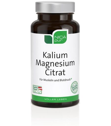 Nahrungsergänzungsmittel sind kein Ersatz für eine ausgewogene und abwechslungsreiche Ernährung und eine gesunde Lebensweise. NICApur® Kalium Magnesium Citrat Nahrungsergänzungsmittel mit den Mineralstoffen Kalium und Magnesium in gut bioverfügbaren organischen Citratverbindungen. Kalium und Magnesium tragen zur normalen Funktion von Muskeln und Nerven bei. Kalium ist für die Aufrechterhaltung eines normalen Blutdrucks wichtig. Magnesium unterstützt einen ausgeglichenen Elektrolythaushalt. Zutaten:Kaliumcitrat, Magnesiumcitrat, Hydroxypropyl-methylcellulose (Kapselhülle). Inhaltsstoffe: pro Tagesdosis 2 Kapsel % NRV* Kalium 475 mg 24 Magnesium 120 mg 32 *% der Referenzmenge nach EU Verordnung 1169/2011Verzehrsempfehlung:Täglich 2 Kapseln mit viel Flüssigkeit zwischen den Mahlzeiten verzehren.Hinweis: Bei Raumtemperatur, trocken und lichtgeschützt lagern. Vor Wärme schützen. Außerhalb der Reichweite von kleinen Kindern aufbewahren. Die angegebene empfohlene tägliche Verzehrsmenge darf nicht überschritten werden.Nettofüllmenge:60 Kapseln = 69 gHersteller:NICApur Supplements GmbH & Co KGA-1070 Wien ...