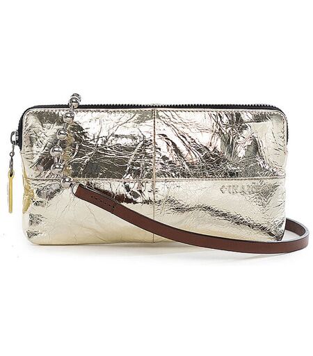 Eine Schultertasche und Clutch im klassischen Etui-Format aus hellem Metallic-Leder. Der Schulterriemen aus vegetabil gegerbtem Leder, verziert mit silbernen Kugelkettendetails, verleiht dem minimalistischen Design eine markante, moderne Note. Der silberne Karabiner lässt sich leicht öffnen, sodass der Riemen problemlos abgenommen werden kann – und sich in ein stylisches Schlüsselband mit zwei Funktionen verwandelt. Da jedes Stück Leder einzigartig ist, sind auch unsere Taschen Unikate – selbst bei folierten Ledern bleibt die Basis unbehandelt. Farbe und Haptik können daher immer leicht variieren. Damen Umhängetasche aus hochwertigem Leder Hauptfach mit Reißverschluss Seitliches Fach innen Abnehmbarer Riemen Farbbezeichnung: Metallic Rock Crystal Maße: Ca. B: 22,5 x H: 13 cm Material: 100% Rindsleder ...
