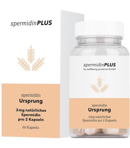 Anwendungsgebiet von Spermidinplus Ursprung KapselnSpermidinplus Ursprung Kapseln - Weizenkeimlingspulver mit hohem Spermidingehalt – (3 mg Spermidin pro 2 Kapseln) (Monatsvorrat 60 Kapseln) – Nahrungsergänzungsmittel.