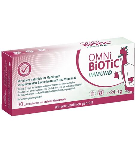 Wirkungsweise von OMNi BiOTiC iMMUND - Vitamin D für das ImmunsystemOMNi BiOTiC iMMUND - Vitamin D für das Immunsystem enthält den natürlich im im Mundraum vorkommenden Bakterienstamm Streptococcus salivarius K12 sowie Vitamin D. Dieses Vitamin sorgt bei Kindern und Erwachsenen für eine normale Funktion des Immunsystems.