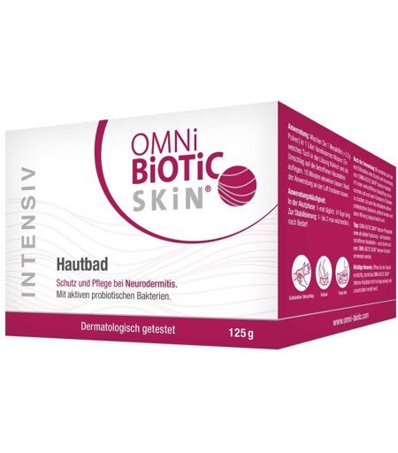 Anwendungsgebiet von OMNi-BiOTiC SKiN Intensiv-HautbadUnsere Haut ist ein hochkomplexes Organ – und gleichzeitig Heimat für Millionen nützlicher Mikroorganismen: Bakterien, Pilze und Milben besiedeln jeden einzelnen Quadratzentimeter. Gemeinsam bilden sie das sogenannte Haut-Mikrobiom, das eine entscheidende Rolle für die Abwehrfunktion und das Immunsystem der Haut spielt.Bei Hauterkrankungen wie Neurodermitis ist diese natürliche Balance oft gestört. Die Vielfalt der Mikroorganismen nimmt ab, und schädliche Keime – wie z. B. Staphylococcus aureus – können sich ungehindert ausbreiten. Das verschärft typische Symptome wie trockene, gereizte Haut und starken Juckreiz.Das OMNi-BiOTiC SKiN Intensiv-Hautbad wurde speziell entwickelt, um diese Dysbalance sanft auszugleichen. Mit lebenden, probiotischen Bakterien unterstützt es das natürliche Mikrobiom der Haut und hilft, die Hautbarriere zu stärken. So können Reizungen gelindert, der Juckreiz reduziert und das Hautbild nachhaltig verbessert werden.✔ Fördert das Gleichgewicht des Haut-Mikrobioms✔ Ideal bei Neurodermitis, trockener & empfindlicher Haut✔ Mit probiotischen Bakterien zur natürlichen Regeneration✔ Sanft zur Haut – auch für sensible Hauttypen geeignet✔ Für ein spürbar beruhigtes, gepflegtes HautgefühlNatürlich gepflegte Haut beginnt mit einem gesunden Mikrobiom.Wirkungsweise von OMNi-BiOTiC SKiN Intensiv-HautbadBei Hauterkrankungen wie Neurodermitis ist das natürliche Mikrobiom der Haut aus dem Gleichgewicht geraten – die Vielfalt nützlicher Mikroorganismen ist deutlich reduziert. Dieses Ungleichgewicht (auch Dysbiose genannt) macht es krankmachenden Keimen wie Staphylococcus aureus leichter, sich auszubreiten. Die Folge: verstärkte Entzündungen, trockene Haut und starker Juckreiz.Das OMNi-BiOTiC SKiN Intensiv-Hautbad setzt genau hier an:Herzstück der Formulierung ist der patentierte Bakterienkomplex Baplexin® 621 – eine einzigartige Mischung aus 9 lebenden, probi ...