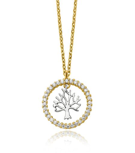 Diese Halskette ist ein wahrhaft strahlendes Schmuckstück, das aus vergoldetem und rhodinierten 925 Sterling Silber besteht. Der atemberaubende Lebensbaum-Anhänger in silberfarben ist mit insgesamt 32 funkelnden Zirkonia umrandet, die ihm einen glamourösen Glanz verleihen. Diese Bicolor-Kreation ist nicht nur ein Blickfang, sondern auch ein Symbol für Leben, Wachstum und Verbundenheit. Der Lebensbaum-Anhänger ist ein zeitloses Motiv, das jeden Look aufwertet und eine positive Ausstrahlung verleiht. Die Länge der Kette ist variabel verstellbar und kann von 38 bis 42 cm angepasst werden. Dies ermöglicht es Ihnen, die Kette perfekt an Ihren Hals anzupassen und sie so zu tragen, wie es Ihnen am besten gefällt. Mit dieser Kette können Sie Ihrem Outfit einen Hauch von Eleganz und Glamour verleihen. Egal, ob Sie sie zu einem formellen Anlass oder im Alltag tragen, sie wird sicherlich alle Blicke auf sich ziehen und Ihre Persönlichkeit zum Ausdruck bringen. Material: Sterling Silber 925 vergoldet, Sterling Silber 925 rhodiniert Farbe: goldfarben, silberfarben Steine: Zirkonia Kettengesamtlänge: 42 cm + 4cm Verlängerung Kettenverschluss: Karabinerhaken ...