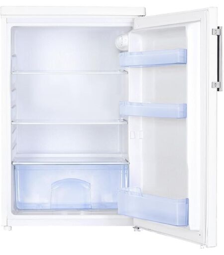 Verbrauchs-Eigenschaften Angabe gem. EU-Verordnung 2019/2016; Energieeffizienzklasse E; Spektrum [A bis G]; 90 kWh/Jahr Energieverbrauch; 0,246 kWh Energieverbrauch in 24 Std.; Energieeffizienzindex: 100; Leistungseigenschaften Klimaklasse N/ST; gesamter Nutzinhalt: 127 l; Vollraumkühlung; Geräusch-Schallleistung: 39 dB; Geräuschemissionsklasse C; Bedienung Temperaturanzeige innen; wählbare Kühlteil-Temperatur ; manuelles Abtauen im Kühlteil; Kühlraum-Ausstattung LED-Innenraum-Beleuchtung; 2 Sicherheitsglasplatten; 1 Gemüseschale; Kaltlagerzonen-Ausstattung transparente Schubfächer; Innentür-Ausstattung 3 Türregale; Zubehör Eiereinsatz; Gehäuse-Eigenschaften Breite: 55 cm; Höhe: 85 cm; Tiefe: 58 cm; Leergewicht: 27 kg; Anzahl der Türen: 1; Rechts-Anschlag der Tür; Tür-Anschlag wechselbar; höhenverstellbare Gerätefüße; Farben weiß; ...