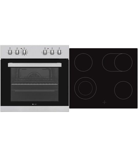Elektrischer AnschlußAngaben nach 2010/30/EU; Energieeffizienzklasse A; Spektrum [A+++ bis D]; Anschlusswert: 9 kW; Kombination Einbauherd+Glaskeramikfeld; Leistungseigensch. Backofen (allgemein)Backrohrvolumen: Large; 0,86 kWh Energieverbr. b. Ober-+Unterhitze; 0,78 kWh Energieverbr. b. Heißluft/Umluft; Bedienung4 Kochzonenregler; Drehregler für Kochzonen; Drehregler für Backofen-Funktionswahl; Drehregler für Backofen-Temperatur; Backofen-Kontrollleuchte; Backofen-Temp.-Kontrollleuchte; Backofen-Funktionen9 Betriebsarten; Ober-/Unterhitze; Heißluft/Umluft; Grill; Umluft-Grillen; Auftaustufe (nur Gebläse); Pizza-Stufe; Backofen-AusstattungInnenraum-Beleuchtung; 2 Stufen-Grill (variable Größe); Glatt-Email-Innenbeschichtung; Anzahl der Innenräume: 1; Innenraum-Volumen: 65 l; Zubehör1 Backblech(e); 1 Grillrost(e); Gehäuse-EigenschaftenBreite: 59,5 cm; Höhe: 59,5 cm; Tiefe: 57,5 cm; Gewicht: 51 kg; 2 Backofen-Türscheibe(n); Backofentür mit Sichtfenster; Unten-Anschlag der Tür; Ausstattung Glaskeramikfeld4 Kochzone(n); Restwärmeanzeige für jede Kochzone; Kochzone-vorne/außen linksZweikreis-Kochzone vorne links; Durchmesser der großen Kochzone: 18 cm; Heizleistung: 1700 W; Kochzone-hinten/innen linksDurchmesser der Kochzone: 14,5 cm; Heizleistung: 1200 W; Kochzone-hinten/innen rechtsBräter-Zweikreis-Kochzone hinten rechts; Durchmesser der kleinen Kochzone: 18 cm; Heizleistung: 1800 W; Kochzone-vorne/außen rechtsDurchmesser der Kochzone: 14,5 cm; Heizleistung: 1200 W; Einbau-EigenschaftenBreite, Kochfeld: 59 cm; Tiefe, Kochfeld: 52 cm; Höhe, Kochfeld: 4,1 cm; Breite, Ausschnitt: 56 cm; Tiefe, Ausschnitt: 49 cm; VerpackungsangabenBreite mit Verpackung: 65 cm; Höhe mit Verpackung: 79,5 cm; Tiefe mit Verpackung: 64 cm; Gewicht mit Verpackung: 53 kg; Farbenedelstahl; ...