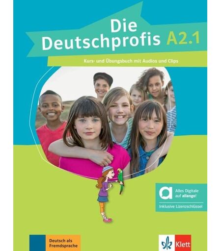 "Mit der Hybriden Ausgabe erhalten Sie in der Printausgabe einen eingedruckten Lizenzschlüssel (für Unterrichtende und Lernende) zur Digitalen Ausgabe. So steht Ihnen das Buch auf der Lernplattform allango auch digital zur Verfügung und Sie haben digitale Medieninhalte sofort griffbereit. Deutsch lernen wie die Profis - jetzt mit dem neuen Lehrwerk ""Die Deutschprofis"" für Kinder ab 8 Jahren. Der Teilband A2.1 mit integriertem Übungsbuch sowie Audios und Clips online enthält 6 Lektionen. Eine Einstiegsseite pro Lektion stimmt auf das Thema ein, am Ende jeder Lektion bietet eine Ausklangseite kreative Aufgaben und Spiele, Projekte und Texte. Nach 6 Lektionen bietet das Buch ein Fertigkeitentraining. Die Reihe ""Die Deutschprofis"" bereitet auf folgende Prüfungen vor: Goethe-Zertifikat A1: Fit in Deutsch, Goethe-Zertifikat A2: Fit in Deutsch, Goethe-/ÖSD-Zertifikat B1 und DSD I. " ...