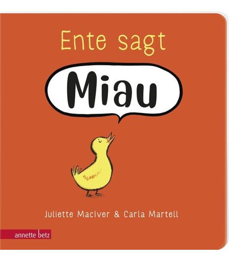 Eine Katzenmama adoptiert Entenküken: Ein ganz besonderes Pappbilderbuch über Tierlaute – inspiriert von einer wahren Geschichte! „Wuff!“ macht Hund. „Muh!“ macht Kuh. „Gack!“ macht Huhn. Und Ente macht … MIAU! Hat die kleine Ente sich etwa vertan? Bei den anderen Tieren bricht turbulente Verwirrung aus! Eifrig erklärt ein Tier nach dem anderen dem Entenküken, was zu tun ist. Doch Ente lässt sich nicht beirren und bleibt sich fröhlich treu. Voller Selbstbewusstsein macht sie „Miau“! Und vielleicht hat sie sich ja gar nicht getäuscht … Ein tierisches Vergnügen zum Vorlesen und Kichern für Kinder ab 18 Monaten ...