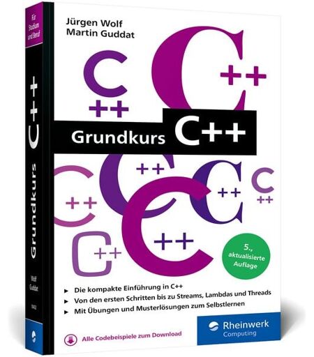 Dieser Grundkurs ist genau das Richtige für alle, die einen schnellen Einstieg in die Programmiersprache C++ und einen Überblick über die Grundlagen ohne viel Beiwerk suchen. Ausführlich und jederzeit verständlich erklären Martin Guddat und Jürgen Wolf alles, was notwendig ist, damit Sie modernes C++ lernen und objektorientiert programmieren können. Von der ersten Seite an geht es sofort los mit einfachen Programmen bis hin zur Entwicklung komplexerer Anwendungen. Übungen am Ende jedes Kapitels helfen Einsteiger*innen und vor allem Selbstlerner*innen beim Verstehen der Sprache. Die kompakte Darstellung macht das Buch zu einer unverzichtbaren Referenz für die Arbeit mit C++.Diese fünfte Auflage wurde umfassend überarbeitet und modernisiert.Das Buch eignet sich hervorragend als Begleiter für das Studium der Informatik und anderer technischer Fächer. Aus dem Inhalt: Das erste Programm in C++ Basisdatentypen Typumwandlung Verzweigungen Schleifen Funktionen Präprozessor-Direktiven Arrays und Zeichenketten (Strings) Zeiger (Pointer) Dynamische Speicherobjekte und Strukturen Namensräume Modulare Programmierung Klassen und Objekte Vererbung Operatoren überladen Templates Exceptionhandling (Fehlerbehandlung) Modernes C++ bis C++23 ...