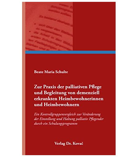 Schulte, Beate Maria - Zur Praxis der palliativen Pflege und Begleitung von demenziell erkrankten Heimbewohnerinnen und Heimbewohnern: Ein Kontrollgruppenvergleich zur ... (Schriften zur Pflegewissenschaft) - Preis vom 18.09.2025 05:07:49 h