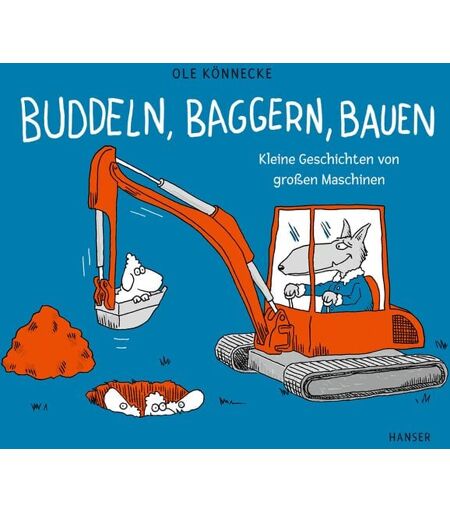 Ole Könnecke über Bagger, Laster, Kran, Raupe und Co. – ein großer Spaß für kleine Bauarbeiter und Nachwuchstechnikerinnen Kinder buddeln und bauen gern. Vor allem große Baumaschinen üben eine riesige Faszination auf die kleinen Bauarbeiter aus. Ole Könnecke erklärt in Text und Bild, was man mit Baggern und Raupen, Kippern und Kränen, Ladern und Lastern alles machen kann – natürlich stets mit einem Augenzwinkern und tierischem Witz: Für ein kleines Loch braucht Herr Wolf nur eine Schaufel, aber um die schwere Schatztruhe auszugraben, nimmt er den Schaufelbagger. Den Konzertflügel befördert Frau Kuh am schnellsten mit dem Teleskopkran über den Zaun auf die Weide. Und wenn Frau Schaf beim Wochenendeinkauf mal wieder einen tonnenschweren Steinklotz zum Bildhauen mitnehmen will, benutzt sie gerne einen Radlader. – Ein originelles Bilderbuch, in dem Information und Witz eine unterhaltsame Verbindung eingehen. ...