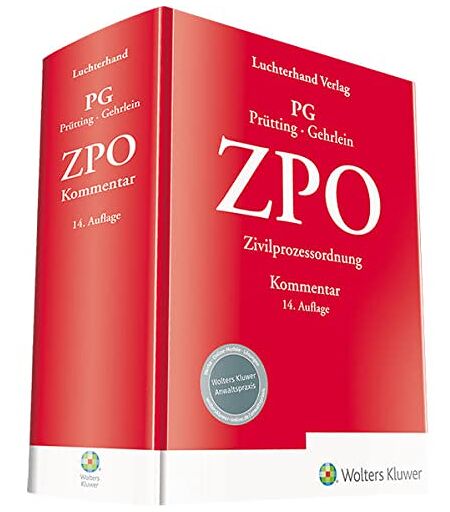 Binding : Gebundene Ausgabe, Edition : 14, Label : Hermann Luchterhand Verlag, Publisher : Hermann Luchterhand Verlag, medium : Gebundene Ausgabe, numberOfPages : 3998, publicationDate : 2022-07-01, publishers : Prütting, Prof. Dr. Hanns, Gehrlein, Prof. Dr. Markus, ISBN : 3472097485 ...