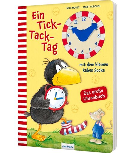 Binding : board_book, Label : Der kleine Rabe Socke : Ein Tick-Tack-Tag mit dem kleinen Raben Socke : Das große Uhrenbuch mit beweglichen Zeigern, medium : board_book, numberOfPages : 16, publicationDate : 2025-03-27, languages : german, ISBN : 3480239900 ...