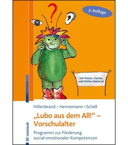 """Lubo aus dem All!"" ist ein erprobtes und wissenschaftlich evaluiertes Programm zur Förderung sozial-emotionaler Kompetenzen im Vorschulalter. Es beruht auf dem aktuellen Stand der Resilienz- und Präventionsforschung. So schafft es gute Voraussetzungen für eine erfolgreiche Bewältigung des Schuleintritts und hilft, langfristig kindliche Verhaltensprobleme zu vermeiden. Die 34 Einheiten von ""Lubo aus dem All!"" lassen sich über einen Zeitraum von drei bis vier Monaten in den Kindergartenalltag integrieren. Durch erlebnisorientierte Spiele und Methoden wird ressourcenorientiertes Lernen möglich. Besonders die begleitende Geschichte um die Identifikationsfigur ""Lubo"" motiviert die Kinder zum Mitmachen. Detaillierte Eltern- und Mitarbeiterinformationen zu jedem der behandelten Schwerpunkte (Emotionen, Emotionsregulation, sozialkognitive Informationsverarbeitung, Transfer in den Alltag) sowie Spiele und Anregungen zur Weiterführung der Programminhalte runden das Konzept ab. Inhalt der Lubo-Box: * ein Praxishandbuch * zwei zum Programm gehörende Poster * 30 Bildkarten * Online-Material mit Lubo-Liedern und mehreren Kopiervorlagen. Zum Lubo-Programm gehört auch die Lubo-Handpuppe, die beim Ernst Reinhardt Verlag separat erhältlich ist (Bestell-Nr. 978-3-497-03127-6)." ...