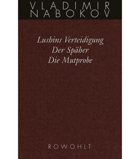 "Der zweite Band der Werkausgabe enthält Vladimir Nabokovs frühe, ursprünglich auf russisch erschienenen Romane ""Lushins Verteidigung""(1929/1930), ""Der Späher"" (1930) und ""Die Mutprobe"" (1931/1932). ""Lushins Verteidigung"" erzählt die Lebensgeschichte eines Mannes, der einer großen Obsession verfallen ist - dem Schachspiel. Der Text gilt als Geniestreich des jungen Autors. ""Der Späher gibt sich vordergründig als unglückliche Liebesgeschichte. Der kurze Roman ist ein Beispiel meisterhafter psychologischer Kriminalistik. Der Entwicklungsroman ""Die Mutprobe"" erinnert voller Melancholie an die russische Heimat Nabokovs. Seine Hauptfigur Martin Edelweiss ist ein wurzelloser Emigrant, mit Ehrgeiz, doch ohne Ziel, und einem Leben ohne Plan. In Berlin erfüllt sich das Schicksal aller Protagonisten dieser drei Romane. In Berlin wurde Vladimir Nabokov zwischen 1922 und 1937 ein russischer Schriftsteller. " ...