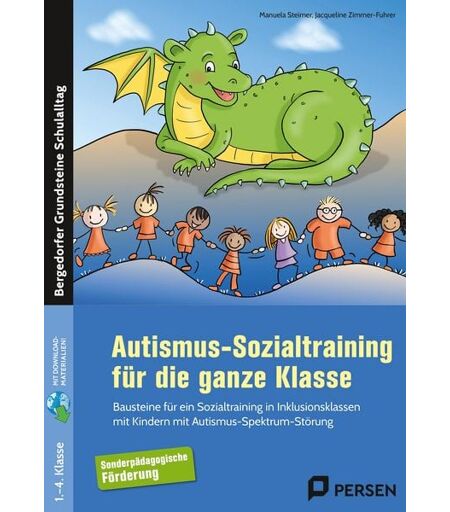 Sozialtraining mit dem kleinen Drachen: Mit diesen Übungen, Spielen und Geschichten schaffen Sie ein positives Klassenumfeld und stärken das wechselseitige Verständnis Ihrer Schülerinnen und Schüler mit und ohne Autismus-Spektrum-Störung! Für Kinder mit einer Autismus-Spektrum-Störung (ASS) ist der Schulalltag oft eine Herausforderung, da sich ihre sozialen Fähigkeiten deutlich von denen anderer Kinder unterscheiden. Sie möchten gezielt die Klassengemeinschaft festigen und alle Schülerinnen und Schüler in ihrer Kommunikationskompetenz fördern? Dieses praxiserprobte Sozialtraining setzt genau hier an: Es vermittelt spielerisch wichtige Fähigkeiten wie geteilte Aufmerksamkeit, Perspektivenwechsel und soziale Interaktion – abgestimmt auf die besonderen Bedürfnisse von Kindern mit ASS und ebenso förderlich für Kinder mit neurotypischer Entwicklung. Wissenschaftlich fundiert, stärkt das Training gezielt die Sozialkompetenzen und das Gemeinschaftsgefühl – insbesondere in Inklusionsklassen. Ein kleiner, sympathischer Drache begleitet die Kinder durch drei aufeinander aufbauende Themenblöcke . Die 20- und teils 45-minütigen Übungseinheiten lassen sich flexibel im Unterricht einbinden, sei es während regulärer Unterrichtsstunden oder als Ergänzung in Fachstunden. Besonders hervorzuheben sind die spielerischen Aktivitäten, die sich langfristig als Rituale etablieren lassen und dafür sorgen, dass das Training nicht nur Spaß macht, sondern auch nachhaltig im Alltag wirkt. Alle Arbeitsblätter, Kopiervorlagen, Bildkarten sowie ein Film und ein Hörspiel zum Training stehen über einen Downloadcode bereit! ...