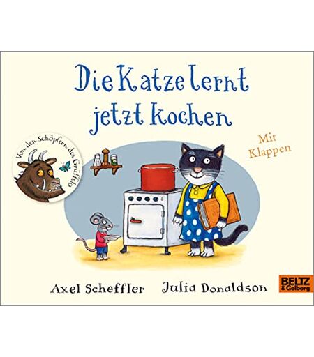 Axel Scheffler - Die Katze lernt jetzt kochen: Vierbarbiges Pappbilderbuch mit Klappen - Preis vom 18.09.2025 05:07:49 h