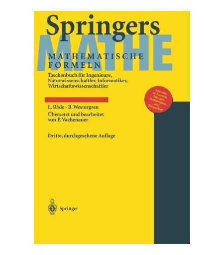 Binding : Gebundene Ausgabe, Edition : 3., durchgesehene Aufl. 2000, Label : Springer, Publisher : Springer, medium : Gebundene Ausgabe, numberOfPages : 552, publicationDate : 2000-09-04, authors : Lennart Rade, Bertil Westergren, translators : Peter Vachenauer, publishers : Peter Vachenauer, languages : german, ISBN : 3540675051 ...
