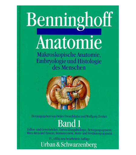Alfred Benninghoff - Anatomie, 2 Bde., Bd.1, Zellenlehre und Gewebelehre, Entwicklungsbiologie, Bewegungsapparat, Herz-Kreislauf-System, Immunsystem, Atemapparat und Verdauungsapparat, 15. völlig neu bearbeitete Auflage. - Preis vom 18.09.2025 05:07:49 h