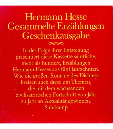 Binding : Gebundene Ausgabe, Label : Suhrkamp, Publisher : Suhrkamp, medium : Gebundene Ausgabe, publicationDate : 1987-01-01, authors : Hermann Hesse, ISBN : 3518031341 ...