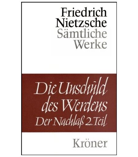 Binding : Taschenbuch, Edition : 2., Aufl., Label : Kröner, Publisher : Kröner, medium : Taschenbuch, numberOfPages : 514, publicationDate : 1978-01-01, authors : Friedrich Nietzsche, languages : german, ISBN : 3520083027 ...