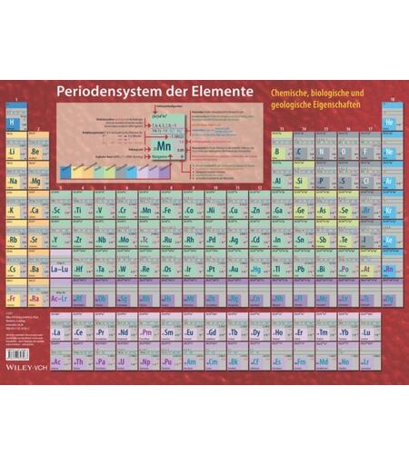 Ob in der Vorlesung, im Labor oder am Schreibtisch, das 'Periodensystem der Elemente' gibt schnelle, kompetente Antwort auf einen Blick. Das handliche, zweiseitig bedruckte und chemikalienfest eingeschweißte Periodensystem ermöglicht Ihnen den sofortigen Zugriff auf mehr als 3000 Elementdaten überall dort, wo Sie sie gerade benötigen. Die sechste Auflage berücksichtigt alle von der IUPAC empfohlenen Änderungen in den Elementdaten bis zum Jahr 2016, einschließlich der neuen Elemente Nihonium, Moscovium, Tennessine und Oganesson. Von Atomradius bis Zerfallsart - auf dem neuen 'Periodensystem' finden Sie unentbehrliche Informationen zu mehr als 20 Elementeigenschaften, darunter: · Elementsymbol, deutscher und englischer Elementname, Ordnungszahl · Relative Atommasse, Massenzahlen, Massenanteil des Elements in der Erdhülle · Anzahl und Häufigkeit natürlicher Isotope, langlebigstes Radioisotop · Radius: Atomradius, Kovalenzradius, Ionenradius, van-der-Waals-Radius · Dichte, Schmelz- oder Siedepunkt · Elektronenkonfiguration, Elektronegativität · Ionisierungsenergie, Reduktionspotential, wichtigste Oxidationszahlen · physiologische Bedeutung ...