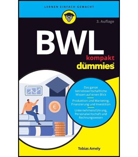 """BWL kompakt für Dummies"" bietet Ihnen eine verständliche Einführung in die Betriebswirtschaftslehre, egal ob Sie sie für die Aus- oder Weiterbildung brauchen oder sich einfach schlau machen wollen. Tobias Amely stellt Ihnen die wesentlichen Elemente und Grundbegriffe der Betriebswirtschaftslehre vor und zeigt die Bezüge zur Unternehmenspraxis auf: Materialwirtschaft, Leistungsbereitstellung und Produktion, Marketing, Investition und Finanzierung, Unternehmensorganisation und -führung, Rechnungswesen und Controlling." ...
