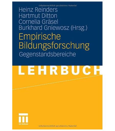 Binding : Taschenbuch, Edition : 2011, Label : VS Verlag für Sozialwissenschaften, Publisher : VS Verlag für Sozialwissenschaften, medium : Taschenbuch, numberOfPages : 238, publicationDate : 2010-12-09, publishers : Heinz Reinders, Hartmut Ditton, Cornelia Gräsel, Burkhard Gniewosz, languages : german, ISBN : 3531178474 ...