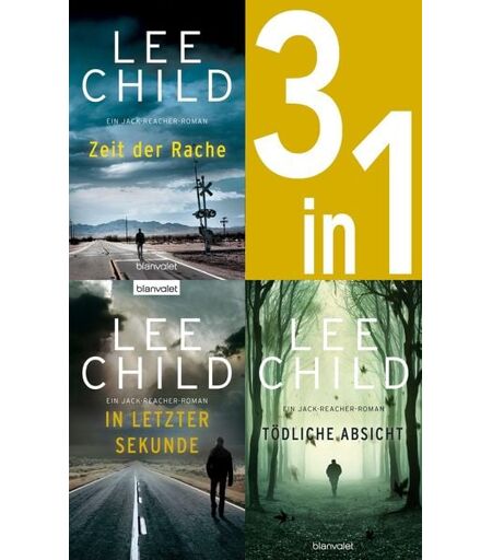 Jeder Action-Held muss sich an Jack Reacher messen lassen - und keiner kommt ihm gleich. Zeit der Rache: Sergeant Amy Callan und Lieutenant Caroline Cook haben einiges gemeinsam. Beide wollten Karriere bei der Armee machen, beide waren Opfer sexueller Belästigung durch Kollegen, beide ließen sich anschließend vom Dienst suspendieren - und beide sind jetzt tot. Wiederum in Übereinstimmung wurden sie beide in ihrer eigenen Badewanne aufgefunden, in Armee-Tarnfarbe schwimmend, die Leichen scheinbar völlig unberührt und ohne ein einziges Anzeichen für die Todesursache. Hochrangige Profiler des FBI beginnen fieberhaft die Jagd nach einem Serienmörder: einem Angehörigen der Armee, einem hochintelligenten, einsamen, unbarmherzigen Mann, der beide Frauen kannte - und wahrscheinlich noch ein paar weitere, auf die Amys und Carolines Opferprofil ebenfalls zutrifft. Auf Jack Reacher, einen ehemaligen Spitzen-Ermittler der Militärpolizei, passen diese Merkmale auffallend perfekt. Das FBI kreist ihn ein, muss aber rasch erkennen, daß er nicht der Täter ist - sondern vielmehr der einzige, der bei der Lösung dieses scheinbar unlösbaren Falles helfen kann. Doch Reacher hat nicht die Absicht, sich vor den Karren des FBI spannen zu lassen... In letzter Sekunde: Ganz gegen seine Gewohnheit beschließt Jack Reacher, der ehemalige geniale Ermittler der Militärpolizei, in der sengenden Hitze von Texas per Anhalter zu fahren. Tatsächlich stoppt ein weißer Cadillac mit der schönen jungen Carmen Greer am Steuer - die ihn anheuert, ihren Ehemann umzubringen. Doch was sich so perfide anhört, ist eine aus tiefer Verzweiflung geborene Idee. Jacks Interesse - und Mitgefühl - ist geweckt. Er verdingt sich als Hilfsarbeiter auf der Ranch, um Carmen zu beschützen. Mit mäßigem Erfolg, denn der gewalttätige Ehemann wird im gemeinsamen Schlafzimmer erschossen - und die Ereignisse überstürzen sich mit tödlichen Konsequenzen... Tödliche Absicht: Jack Reacher, legendärer Spitzen-Ermittler bei der Militärpolizei, quittierte vor Jahren den Dienst. Seither ist er »abgetaucht«, führt ein rastloses Leben als Einzelgänger ohne festen Wohnsitz. Dennoch wird er eines Tages von der ehemaligen Lebensgefährtin seines verstorbenen Bruders aufgespürt. Und sie überrascht ihn mit dem Anliegen, er möge im Auftrag des Secret Service ein Attentat auf den Vizepräsidenten der Vereinigten Staaten vorbereiten ... ...