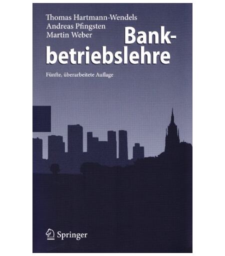 Binding : Taschenbuch, Edition : 5. Aufl. 2010, Label : Springer, Publisher : Springer, medium : Taschenbuch, numberOfPages : 986, publicationDate : 2010-03-11, authors : Thomas Hartmann-Wendels, Andreas Pfingsten, Martin Weber, languages : german, ISBN : 3642118569 ...
