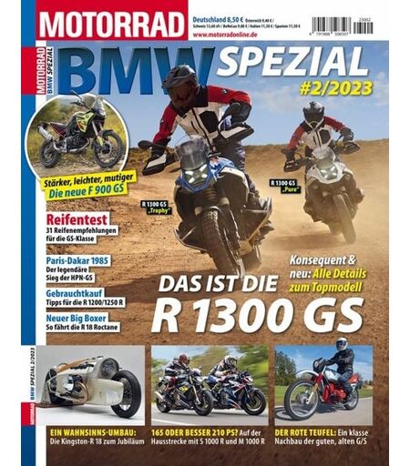 Das neue MOTORRAD BMW Spezial 2/2023 ist die Pflichtlektüre für alle Fans der weißblauen Motorradmarke. Unser dickes Herbst-Heft ist prall gefüllt mit folgenden Themen: Die Neuvorstellung der BMW R 1300 GS. Der Topseller geht mit mehr Leistung, weniger Gewicht und neuen Technik-Highlights in die Saison 2024. Wir haben bereits alle Fakten und Hintergründe recherchiert. Ebenfalls neu und bereits bei uns im Heft: die komplett neue F 900 GS mit „großem“ Adventure-Version und „kleinem“ F 800 GS-Ableger. Aus der bunten BMW-Umbauszene stellen wir die einmalige „100 Years-R 18“ von Kingston Custom vor und von Rock’n’Roll-Cycles kommt ein ganz exklusiver Gespann-Renntransporter auf drei Rädern ums Eck gebogen. Wir verraten, mit welchen Schrauberkniffen auch Neulinge ihren alten Boxer warten und pflegen können und welche Reifen auf der R 1250 GS im Gelände, beim Reisen oder auf der Hausstrecke am besten funktionieren: Über 30 Modelle haben wir in der Kaufübersicht bewertet und zusammengefasst. ...