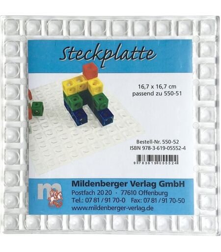Die Steckplatte ist als Zubehör zu den Steckwürfeln (Kantenlänge 1,6 cm, ISBN 978-3-619-05551-7 ) erhältlich. ...