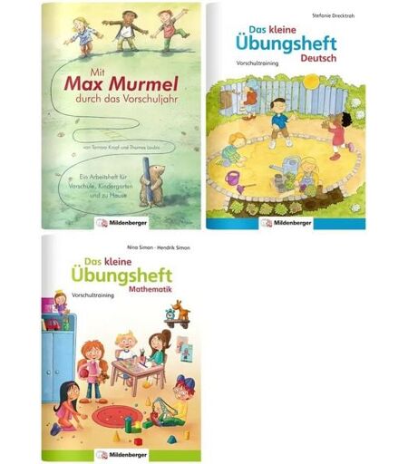 Zielgruppe : Kinder, die im nächsten Schuljahr eingeschult werden. Hinweise zur Verwendung: Mit „Mit Max Murmel durch das Vorschuljahr“ sollte das Kind beginnen. Danach können entweder parallel oder hintereinander die beiden anderen Übungshefte bearbeitet werden. „Mit Max Murmel durch das Vorschuljahr“ ist ein Arbeitsheft zur Vorbereitung auf die Schule, mit dem die wichtigsten Bereiche der Schulfähigkeit trainiert und überprüft werden können. Die 68 Arbeitsblätter sind weitgehend selbsterklärend aufgebaut. Nach einer kurzen Einführung können die Kinder die Seiten selbstständig bearbeiten. Piktogramme am oberen rechten Rand zeigen, welche Tätigkeiten jeweils durchzuführen sind. Das kleine Übungsheft Deutsch bahnt spielerisch erste Vorübungen fürs Schreiben und Lesen in den Bereichen: Grafomotorik, optische Wahrnehmung, Raumlagebestimmung und Seitigkeit, logische Zuordnung und im Bereich von Reim und Silbe an. Die Kinder machen erste Schwungübungen, finden Fehler im Vergleich zweier Bilder, erkennen die Seitigkeit einer Illustration wieder, ordnen Bilder einander zu oder bringen eine Bildergeschichte in die richtige Reihenfolge, im sprachlichen Bereich lernen sie Reimwörter kennen und die Silbenstruktur unserer Wörter. Spielerisch, abwechslungsreich und mit viel Vergnügen werden die verschiedenen motorischen und kognitiven Vorläuferleistungen trainiert. Das kleine Übungsheft Mathematik schult das mengen- und zahlbezogene Wissen eines Vorschulkindes und fördert dessen spätere Leistungen im Mathematikunterricht. Das kleine Übungsheft ermöglicht Vorschulkindern anhand von geeigneten Aufgaben selbstständig Erfahrungen im pränumerischen Bereich zu machen, um so ihre Ausgangsposition für den Schulstart „spielerisch“ zu verbessern. Dies geschieht durch Übungen, in denen sie zeichnen und bauen, zerlegen und zusammenfügen, vergleichen, ordnen und sortieren, zählen. Bei den kleinen Übungsheften darf das Kind für jede bearbeitete Seite einen Sticker in ein Wimmelbild kleben. Das bewährte Sticker-Belohnungssystem für bearbeitete Seiten stellt für die Kinder einen zusätzlichen Anreiz dar. Das heraustrennbare Bild ist die Bestätigung für seine Leistung. Bei den kleinen Übungsheften darf das Kind für jede bearbeitete Seite einen Sticker in ein Wimmelbild kleben. Das bewährte Sticker-Belohnungssystem für bearbeitete Seiten stellt für die Kinder einen zusätzlichen Anreiz dar. Das heraustrennbare Bild ist die Bestätigung für seine Leistung. ...