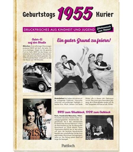 Ein einzigartiges Geschenk zum 70. Geburtstag Geburtstagszeitung zum runden Geburtstag als Buch-Geschenk für Omas, Opas, Mamas oder Papas Überblick über 20 Lebensjahre mit spannenden Artikeln, historischen Bildern, Rezepten und Rätseln – zum Erinnern und Schwelgen Originelles Geschenk zum 70. Geburtstag für Männer und Frauen Liebevoll gestaltetes Geburtstagsgeschenkbuch als Hardcover/gebundene Ausgabe Jahrgangsbuch 1955 mit 80 Seiten (Maße: 17,4 x 24,5 cm) Schenken Sie eine ganz persönliche Zeitreise durch die Jahre der Kindheit und Jugend. Was war los in den 40er und 50er Jahren? Welche Schlagzeilen gingen um die Welt? Wie verbrachten die Menschen ihren Alltag? Was waren die Trends in Musik, Kino und Mode? In diesem ganz besonderen Geschenkbuch in Form einer Geburtstagszeitung zum 70. Geburtstag finden sich interessante Infos zum damaligen Zeitgeschehen, Rezepte, längst vergessene Werbeanzeigen und spannende Rätsel. Ein ganz besonderer Erinnerungsschatz für alle, die ihren 70. Geburtstag feiern. ...