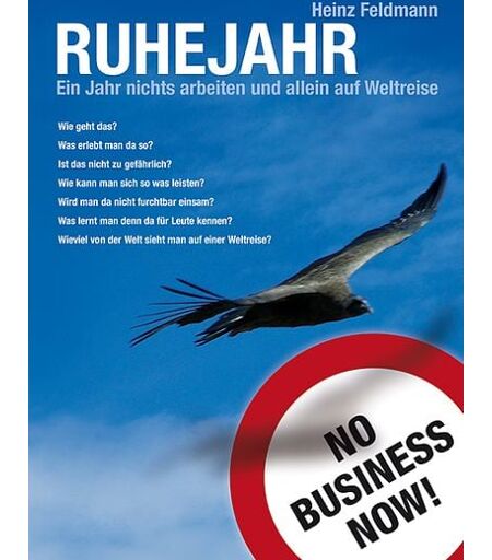 „Kehren Sie nach dem Urlaub nicht mehr zur Arbeit zurück – Plädoyer für ein Ruhejahr in der Lebensmitte“; betitelte Helmut Gansterer vor Jahren einen Essay. Heinz Feldmann nahm sich diese Anregung zu Herzen. Nach einer erfolgreichen Berufskarriere und der Aufgabe als Alleinerzieher für seinen Sohn träumte der Unternehmer Feldmann davon, ein Jahr lang alle Arbeit ruhen zu lassen und auf Weltreise zu gehen. Der Spagat zwischen Privatleben und Beruf brachte ihn mehr als einmal an seine persönlichen Grenzen. Als der Sohn dann 18 wird und die Firma gut läuft, ist es endlich soweit. Es ist das Buch über ein Ruhejahr, über eine Reise um die Welt, die auch eine Reise ins eigene Ich wird – mit allen Höhen und Tiefen. Jetzt kann er herausfinden wie es ist, wenn der Wunschtraum plötzlich wahr wird: Dem Stress des Alltags zu entfliehen, ohne fixe Ziele und Termine als „Backpacker“ mit einem 20kg Rucksack für ein Jahr auf Reisen zu gehen. ...
