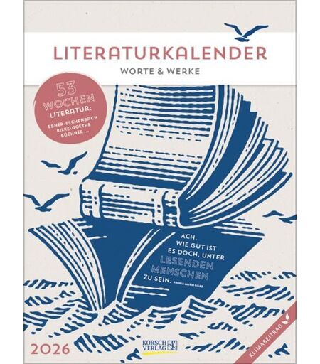 Produktmerkmale • Format: 24 x 32 cm; Wochenkalender mit 53 einzigartigen Grafiken und Zitaten • Kalendarium auf Deutsch mit hervorgehobenen Sonn- und Feiertagen für D, A und CH • Gedruckt auf In diesem Wochenkalender sind 53 Gedanken, Zitate und Gedichte bekannter Autorinnen und Autoren in einem modernen Look in Szene gesetzt und werden so direkt in die Gegenwart katapultiert. Wundersch ön gestaltet und ein Must-have für alle Literatur-Fans. Mit Klimabeitrag hergestellt auf nachhaltig produziertem Papier. ...