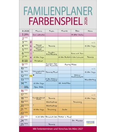Korsch Verlag Familienplaner Farbenspiel 2026