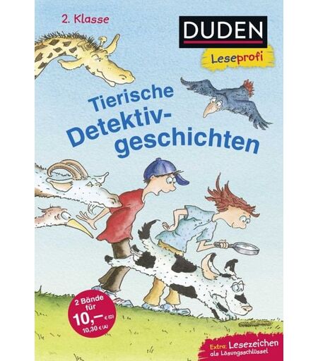 "Doppelter Lesespaß für Grundschulkinder ab 7 Jahren! Frau Kleins Hund ist verschwunden – ein klarer Fall für Jan und Lukas! Einen Verdächtigen haben sie auch schon: den seltsamen Hermann Lampe. Emma feiert ihren Geburtstag im Zoo mit einer Schnitzeljagd. Doch dann ist der Siegerpreis verschwunden! Wo sind nur die leckeren Gummibärchen? Eine aufregende Suche beginnt, denn es gibt viele Verdächtige ... 2 spannende Erstlesegeschichten für neugierige Detektivinnen und Detektive! Duden – von Anfang an richtig! Lesenlernen leicht gemacht: Erstlesespaß für Kinder ab der 2. Klasse So geht zeitgemäße Leseförderung: Diese lustige und mit viel Liebe zum Detail illustrierte Erstlesegeschichte aus der Reihe ""Leseprofi"" von FISCHER Duden Kinderbuch sorgt garantiert für Lesespaß . Der Text ist genau auf die Bedürfnisse der Jungen und Mädchen zugeschnitten. So erleben sie schnell motivierende Erfolge. Kleine, abwechslungsreiche Rätsel zur Sicherung des Textverständnisses begleiten beim Lesen. Ein interaktives Lesezeichen dient als Lösungsschlüssel. Alle Titel der Reihe werden bei Antolin gelistet und von einer pädagogischen Fachberatung geprüft. " ...