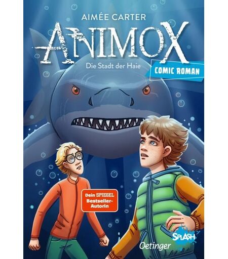 "Animox Band 3 als actionreiche Comic-Geschichte Die spannenden Geschichten rund um die Welt der Animox endlich auch für jüngere Leser*innen! In ""Animox Splash 3. Die Stadt der Haie"", dem atemberaubenden dritten Band der Tierwandler-Saga von Aimée Carter, setzt Simon Thorn seine gefährliche Mission fort, die verschollenen Stücke der Waffe des legendären Bestienkönigs zu finden. Die fesselnde Geschichte wird modern und in einfacherer Sprache nacherzählt sowie mit zahlreichen Comic-Elementen angereichert. Auch für leseschwächere Kinder äußerst attraktiv. Ein Must-Have für alle Animox-Fans und solche, die es werden wollen! Animox als Comic-Roman 3. Die Stadt der Haie: Animox für jüngere Leser*innen Action, Abenteuer und Tierwandler: Band 3 der erfolgreichen Tierwandler-Reihe als leicht zu lesendes Comic-Buch für Kinder ab 8 Jahren. Mit Tieren sprechen: Die abenteuerliche Freundschaftsgeschichte rund um den jungen Gestaltwandler Simon entführt junge Fantasy-Fans in die geheimnisvollen Tiefen des Ozeans. Comic trifft Roman: Zahlreiche Comic-Elemente machen das Fantasy-Kinderbuch leicht zugänglich und schnell erfassbar. Zielgruppengerecht: Die beliebte Geschichte wird in einfacherer Sprache nacherzählt und ist so auch für leseschwächere Kinder gut verständlich. Faszination Animox: Der ideale Einstieg in die Bestseller-Reihe von Aimèe Carter für junge Animox-Fans. Empfohlen von Stiftung Lesen. Ob Action, Abenteuer, Freundschaft oder Fantasy - die Bücher von Oetinger SPLASH sind perfekt auf die Interessen und Lesefähigkeiten von Kindern ab 7 Jahren abgestimmt. Witzige Comic-Elemente machen die Geschichte lebendig. Kurze und leicht verständliche Texte erleichtern das Lesen. Tolle Illustrationen unterstützen das Textverständnis und machen jedes Buch zu einem visuellen Erlebnis. Hier macht Lesen lernen Spaß! " ...