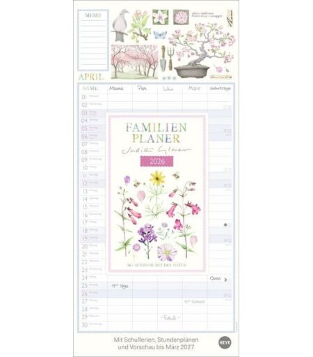 - Nostalgischer Ausflug in die Garten-Welt: Der Judith Glover-Familienkalender 2026 - Jeden Monat aufs Umblättern freuen: Planer mit detailfreudigen Illustrationen, von zarten Blüten bis hin zu wertvollen Schätzen aus dem Obst- und Gemüse-Garten - Organisationshilfe für Familien: Kalender mit Schulferien, Stundenplänen und einer 3-Monats-Vorschau auf das neue Jahr - Mehr Überblick für Groß und Klein: Familienplaner mit 5 Spalten Platz für Garten-Termine und andere Aktivitäten, im praktischen 21 x 45 cm-Hochformat - Einfach stilvoller planen: Familien-Wandkalender von Heye im Athesia Kalenderverlag ...