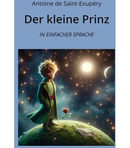 "Dieses Buch ist in einfacher Sprache geschrieben. Bei der Übersetzung in einfache Sprache folgen wir weitgehend der Norm DIN 8581-1. Das Buch eignet sich für Leserinnen und Leser, die eine eingeschränkte Lesefähigkeit haben (LRS), Deutsch als Zweitsprache lernen, mit komplexen Texten Schwierigkeiten haben oder einfach ein Buch in kompakter, lesefreundlicher Form genießen wollen. ""Der kleine Prinz"" ist ein philosophisches Märchen von Antoine de Saint-Exupéry, das erstmals 1943 veröffentlicht worden ist. Es zählt zu den meistgelesenen Büchern weltweit. Die Geschichte handelt von einem kleinen Prinzen, der von einem fernen Asteroiden stammt, auf dem er drei Vulkane und eine stolze Rose pflegt. Die Erzählung beginnt, als der kleine Prinz die Erde besucht. Auf der Erde trifft der kleine Prinz auf eine Vielzahl von Charakteren, darunter eine Schlange, einen Fuchs und schließlich den Erzähler, einen Piloten, der in der Sahara notgelandet ist. ""Der kleine Prinz"" ist eine bewegende Erzählung, die sowohl Kinder als auch Erwachsene anspricht und zum Nachdenken über die wirklich wichtigen Dinge im Leben anregt. Sie bleibt ein zeitloses Werk, das Fragen der Liebe, Verantwortung und des menschlichen Daseins auf poetische Weise erkundet." ...