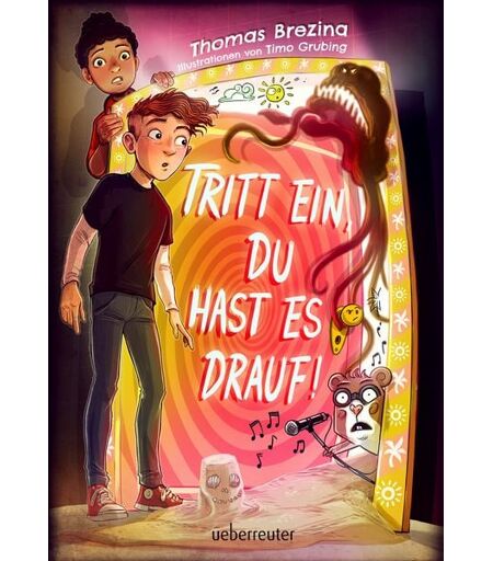 Witzig wie ein Kinder-Comic, spannend wie ein Fantasy-Buch: das neue Abenteuer von Bente, Leonie und dem Riesenmeerschweinchen Jet-Sau Zwei Mal schon hat Bente seine Klasse gerettet – ohne, dass jemand davon ahnt. Außer seiner besten Freundin Leonie natürlich. Und dem riesigen Meerschweinchen Jet-Sau, das aus einer magischen Zeichnung zum Leben erwacht ist. Aber begonnen hat das alles mit einer mysteriösen Tür, die plötzlich vor Bente auftaucht und ihn zu den verrücktesten Abenteuern auffordert. In den Sommerferien ist es wieder so weit: Die Tür erscheint ... »Tritt ein« von Thomas Brezina – Einstieg mit jedem Band der Kinderbuch-Reihe möglich Werden Bente, Leonie und Jet-Sau auch diesmal alles zum Guten wenden? Kinder-Comicroman zum Mitfiebern mit lustigen Bildern von Timo Grubing Viel Action, hohes Erzähltempo und eine Sprache, die Kinder in ihrem Alltag abholt Innovatives Wendebuchkonzept – weckt auch bei Lesemuffeln die Leselust! Kurze Sätze, witzige Illustrationen und maximaler Lesesog: So klappt die Leseförderung! Die Geschichten rund um die magische Tür und den unerkannten Helden Bente ziehen sogar Wenig-Leser*innen ab 9 Jahren in ihren Bann. Jedes Abenteuer steckt voller überraschender Wendungen, ist leicht zu lesen und sorgt für Spannung bis zum Schluss. Wird es Bente auch diesmal gelingen, die Aufgabe zu bestehen? Und was ist eigentlich mit Leonie los? Warum wollen die Tür und Jet-Sau so dringend mit Bente sprechen? Diese und viele weitere Fragen werden beantwortet – für diejenigen, die sich trauen, das Buch zu wenden und weiterzulesen! ...