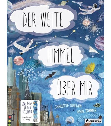 Flieger, Mond und Sterne: Entdecke den Himmel und das Weltall! Ein einzigartiges räumliches Lese-Erlebnis im 2,5 Meter Leporello-Format. Komm mit auf eine Reise in den Himmel über dir, durch die Luft und die Erdatmosphäre in die unendlichen Weiten des Universums und wieder zurück! Du wirst unterwegs die erstaunlichsten und interessantesten Dinge sehen! Dieses fast endlose Leporello-Bilderbuch lenkt den Blick auf den blauen Himmel über uns. Was passiert eigentlich dort oben? Schmetterlinge flattern durch die Luft, Vögel ziehen ihre Kreise. Fensterputzer machen ihre Arbeit in schwindeligen Höhen, Flugzeuge und Heißluftballons trotzen der Schwerkraft. Höher und höher geht die Reise, durch Wolken und Gewitter hindurch, hinaus in die Stratosphäre, wo Menschen nicht mehr atmen können, bis zum Mond, zur Sonne, zu Zwergsternen, Supernovas und dem Ende unseres Sonnensystems. Was für ein Abenteuer! Ebenfalls in der Reihe lieferbar: Unter meinen Füßen: Eine Reise zum Mittelpunkt der Erde (ISBN 978-3-7913-7340-9) Unter mir das Meer (ISBN 978-3-7913-7542-7) Ausstattung: durchgehend illustriert; Leporello ...