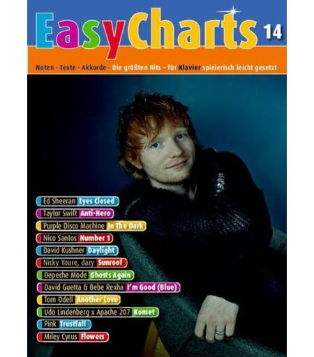 Mit Easy Charts 14 erscheint eine Sammlung aktueller Hits, die Anfänger am Klavier schon nach dem ersten Unterrichtsjahr spielen können. Dabei dürfen die großen Hits angesagter Popstars natürlich nicht fehlen: Der einfühlsame Titelsong Eyes Closed von Ed Sheeran, der Ohrwurm-Hit Anti-Hero von Superstar Taylor Swift, der Chartstürmer Number 1 von Nico Santos und viele Hits mehr warten nur darauf, gekonnt in Szene gesetzt zu werden. So machen das Üben und Spielen zuhause und vor Publikum gleich noch mehr Spaß! Schwierigkeitsgrad: 1 ...
