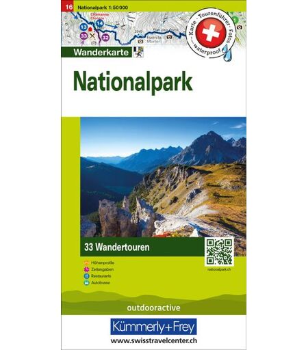 In der Kümmerly+Frey Wandertourenkarte Nationalpark im Massstab 1:50'000 sind die schönsten Wanderrouten der Region für Sie zusammengetragen. Dank den deutlich gekennzeichneten, leicht lesbaren und aktuellen Wanderwegen, dem aufgeräumten Kartenbild und der übersichtlichen Geländedarstellung, ist die Karte das perfekte Hilfsmittel, um das Beste aus ihrem Besuch in dieser aussergewöhnlichen Region zu machen. Dank den in der Karte markierten Wanderroutenvorschlägen finden Sie einfach ein Abenteuer in Ihrer Region. Die Karte enthält detaillierte topografische Informationen wie Höhenlinien sowie Höhenangaben zu Berggipfeln, Pässen und grösseren Seen und gibt dadurch eine präzise Abbildung vom Gelände. In Zusammenarbeit mit Outdooractive haben wir alles Wissenswerte über die vorgeschlagenen, schönsten Touren einfliessen lassen: Wichtige Angaben über Höhenprofile, Zeitangaben der Wanderung, Restaurants, Postautohaltestellen und vieles mehr! Die Faltkarte für Wanderer besteht aus einem robusten, weitgehend wasserresistenten und reissfesten Papier. Auch bei schwierigen Wetterbedingungen lässt sie Sie nicht im Stich. Sollte das GPS mal nicht funktionieren oder das Handy keinen Akku mehr haben, helfen Ihnen die auf der Karte deutlich verzeichneten Wanderwegen, Aussichtspunkten, Bahnhöfen, Einkehrmöglichkeiten, Campingplätzen, Parkplätzen, etc. stets die Orientierung zu behalten. ...