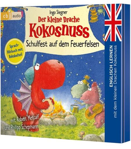 Coconut at the school festival – Englischunterricht mit Spiel, Sport und Spaß Das Schulfest auf dem Feuerfelsen steht bevor! Und der kleine Drache muss sich vorher noch einer ganz besonderen Herausforderung stellen: Flugtraining. Ein ehrgeiziges Projekt, bei dem er zum Glück Unterstützung von seinem britischen Freund Robert bekommt. Denn wer fliegen lernen will, braucht dafür auch den richtigen Wortschatz! Wird Kokosnuss sein Flugtraining meistern und am Ende mit den anderen Drachen zum Feuerfelsen fliegen? Das neue Englischabenteuer zu den Wortschatzgruppen »Gesundheit«, »Sport« und »Schulsachen«, gelesen und gesungen von Kokosnuss-Stimme Philipp Schepmann und Native Speaker Robert Metcalf. Das Hörbuch erzählt ein spannendes Kokosnuss-Abenteuer, in das drei Sprachlektionen und eine Wiederholungslektion eingebettet sind. In jeder Lektion lernen die kleinen Zuhörerinnen und Zuhörer mit der Geschichte und einem kurzen Song eine neue Vokabelgruppe kennen. Der Erzähltext ist in Deutsch gesprochen, so dass auch für Englischanfängerinnen und -anfänger keine Verständnisprobleme bestehen. Zum Nach- und Mitlesen finden Kinder und Eltern im bunten Booklet noch einmal alle Vokabeln und Liedtexte abgedruckt. Inszenierte Lesung mit Musik mit Philipp Schepmann, Robert Metcalf 1 CD, 1h 6min ...