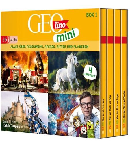 Spielerisch, humorvoll, lehrreich – vier GEOLINO MINI-Abenteuer in einer Box! Charmant führt Ralph Caspers durch die kunterbunten Geschichten und erlebt gemeinsam mit seinen Insekten-Freunden Grashüpfer Georg, Mistkäfer Mo und Libelle Belle lehrreiche Abenteuer. Mit viel Humor und immer der richtigen Portion Ernsthaftigkeit! Vier kindgerechte, witzige Sachhörspiele zu den beliebtesten Themen aus den GEOLINO MINI-Heften: » GEOLINO MINI: Alles über die Feuerwehr » GEOLINO MINI: Alles über Pferde und Ponys » GEOLINO MINI: Alles über Ritter und Burgen » GEOLINO MINI: Alles über Sterne und Planeten Hörspiel mit Ralph Caspers, Julian Horeyseck, Martin Bross, Mayke Dähn, Alexander Gerst 4 CDs, ca. 3h 12min ...
