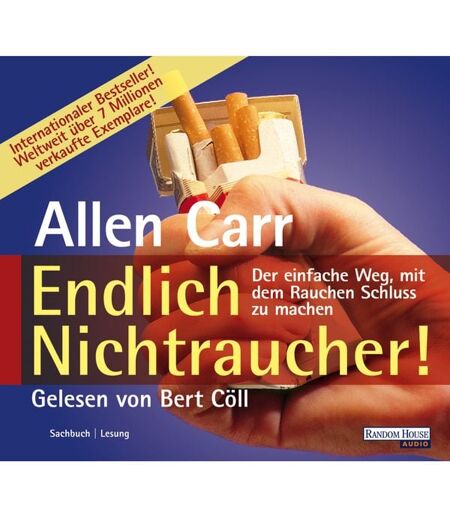 "Die mit Abstand erfolgreichste Methode das Rauchen aufzugeben! Mit ""Endlich Nichtraucher!"" schrieb Allen Carr das weltweit erfolgreichste Buch zur Überwindung der Nikotinsucht. Der ehemalige Kettenraucher hat aufgrund eigener Erfahrungen eine Methode entwickelt, mit der es selbst langjährigen Rauchern gelingt, sich von ihrem Zwang zu lösen. Dieses Hörbuch vermittelt eine geradlinige Schritt-für-Schritt-Anleitung bis zur letzten Zigarette. Als Hörbuch zum kleinen Preis!" ...