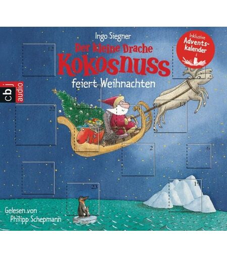 Inklusive Adventskalender Es ist Winter und die Dracheninsel liegt verschneit im Meer. Der kleine Drache Kokosnuss und das Stachelschwein Matilda bauen Schneedrachen, als zwei merkwürdige Gestalten am Horizont auftauchen. Die Fremden im schwarzen Frack sind Pinguine, die den Weg zum Südpol suchen. Den kennen Kokosnuss und Matilda auch nicht, aber ihr Freund Yeminee weiß Rat: Die Pinguine sollen den Weihnachtsmann fragen, denn der bereist am 24. Dezember schließlich die ganze Welt! Weihnachtsmann? Weihnachten? Davon haben Kokosnuss und Matilda noch nie gehört. Doch als Yeminee mit leuchtenden Augen von Heiligabend erzählt, ist klar: Dieses Fest wollen die Drachen auch feiern! Sofort brechen Kokosnuss und Matilda zum Weihnachtsmann auf. Wie es ihnen gelingt, den freundlichen alten Mann zu überreden, am 24. Dezember die Dracheninsel zu besuchen, erzählt das neue lustige und spannende Abenteuer vom kleinen Drachen Kokosnuss. Die hier vorliegende Geschichte ist in den Grundzügen identisch mit den bei cbj erschienenen Büchern Der kleine Drache Kokosnuss besucht den Weihnachtsmann (ISBN 978-3-570-13202-9) sowie Der kleine Drache Kokosnuss feiert Weihnachten (ISBN 978-3-570-12765-0). (1 CD, Laufzeit: 58 min) ...